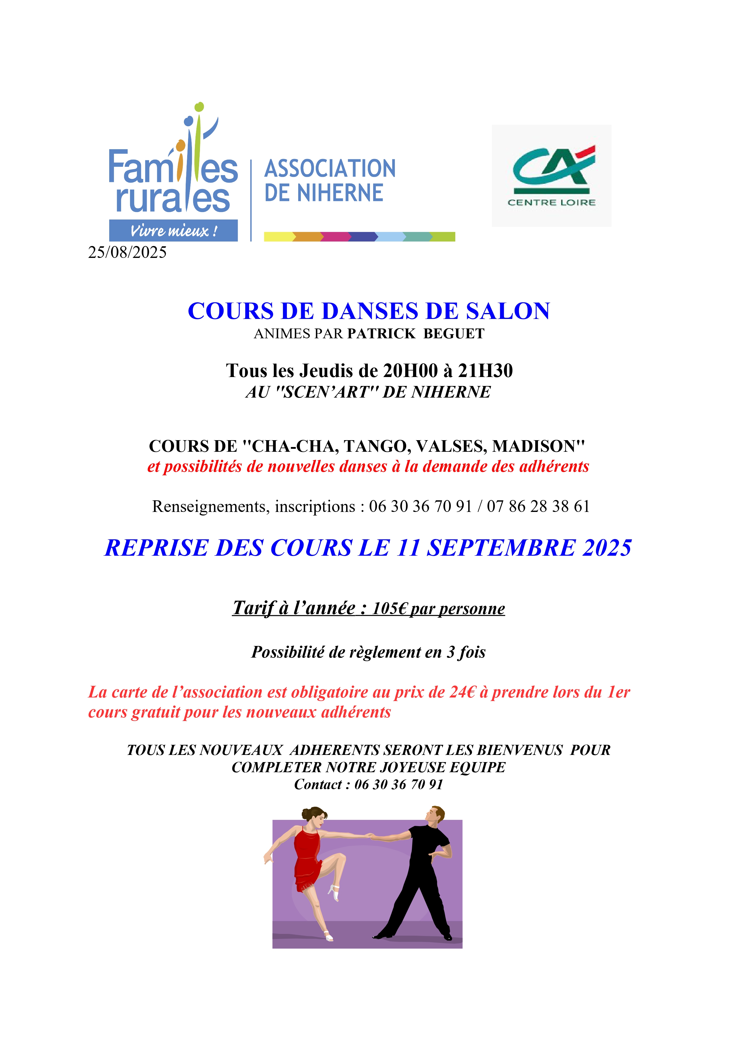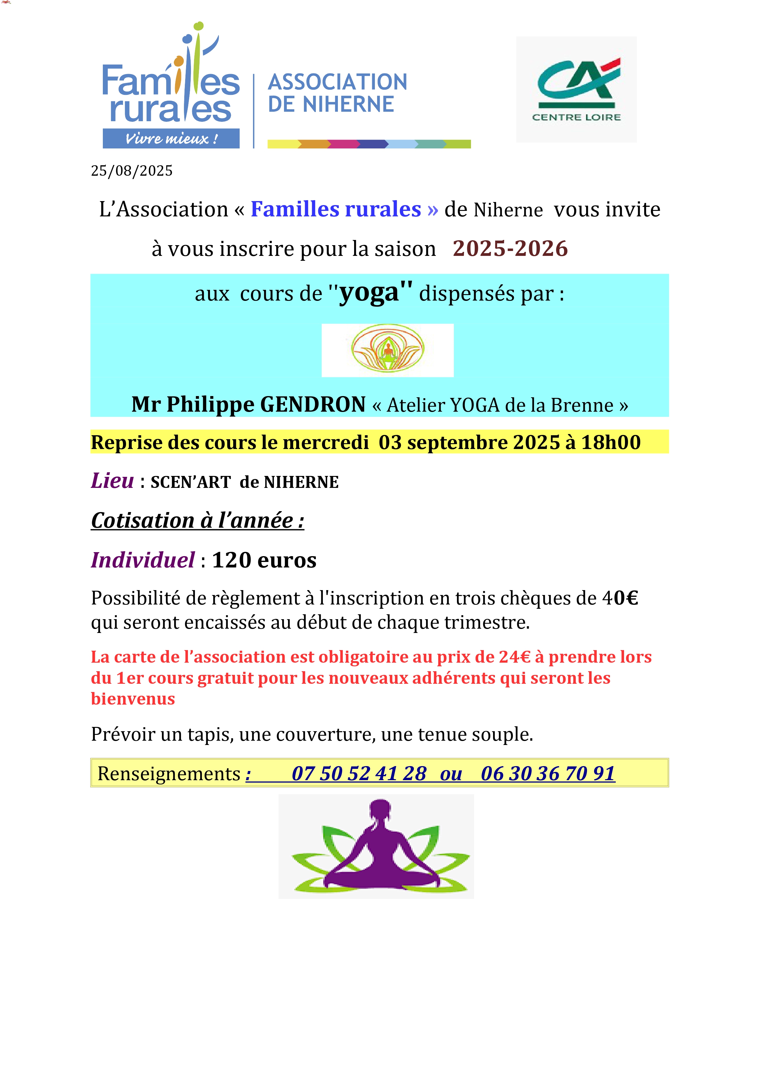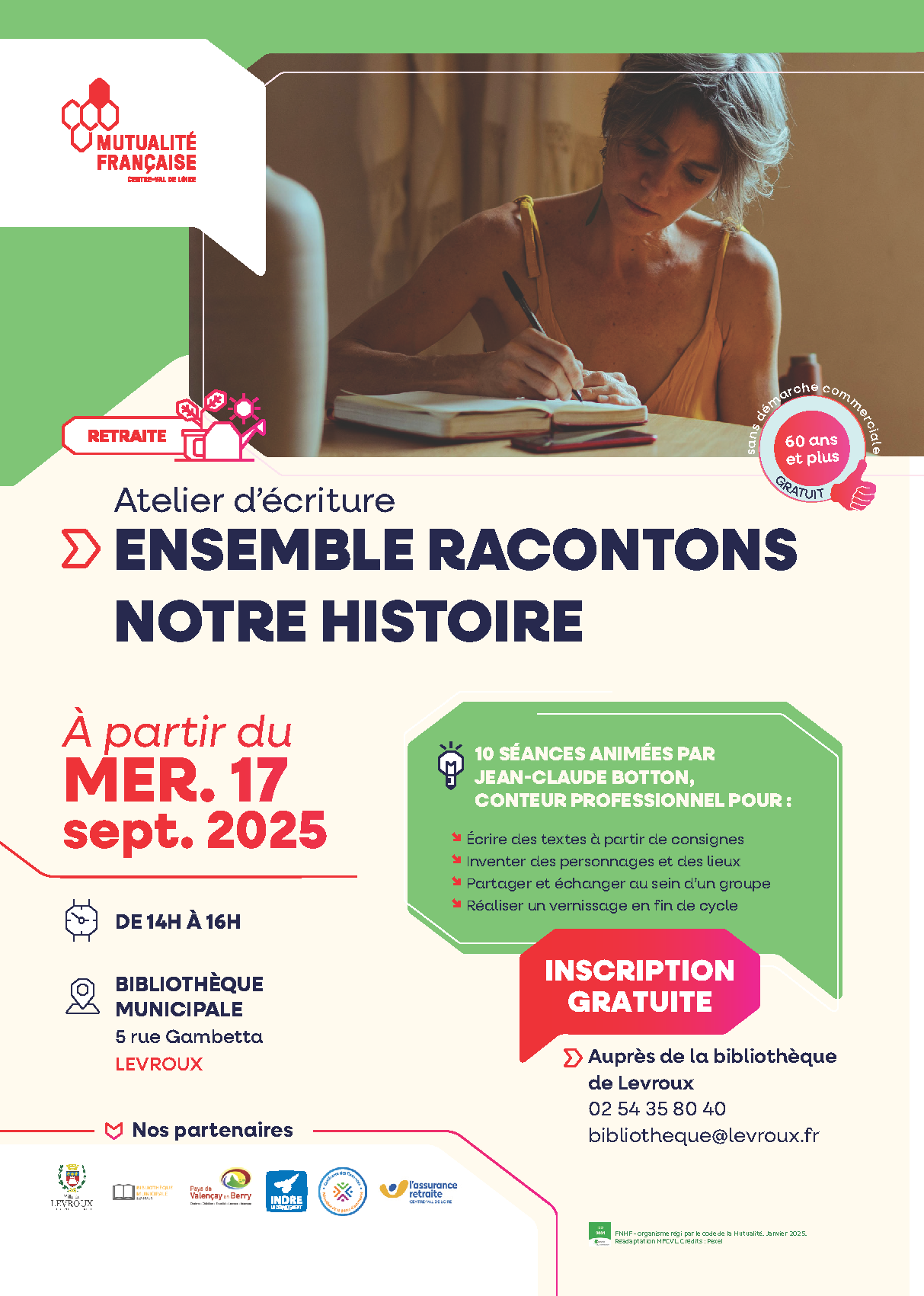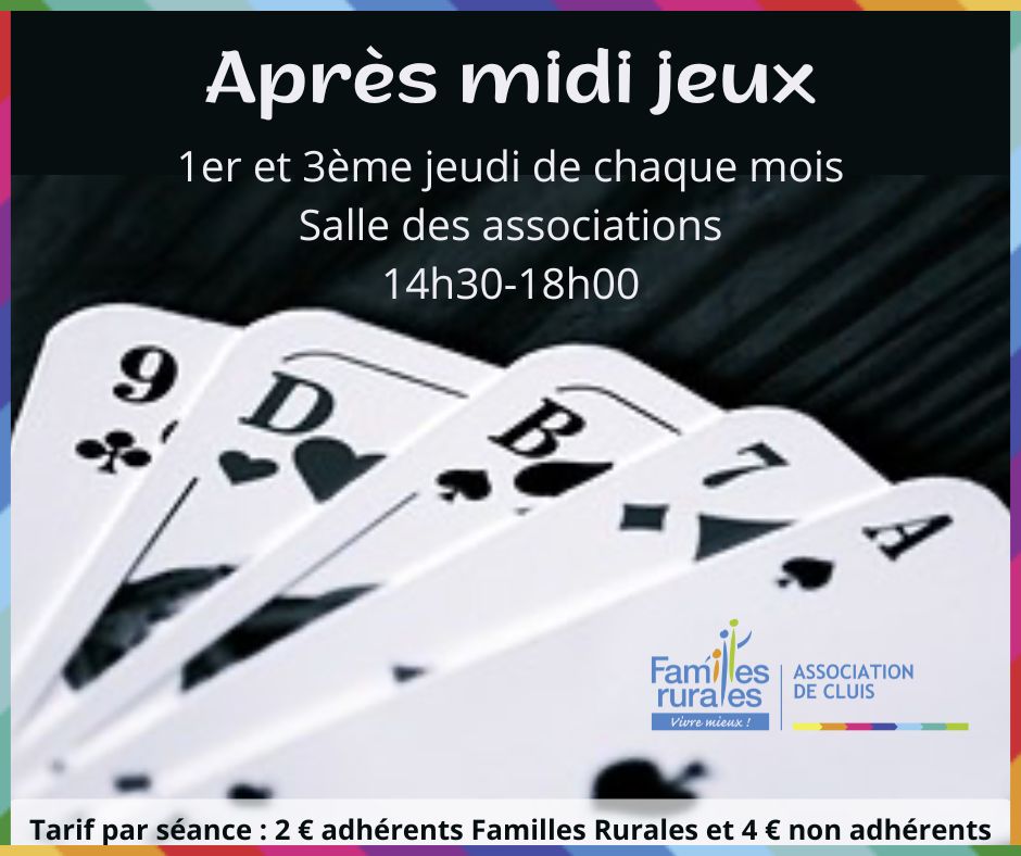 Activités et manifestations de l'AFR de Maillet - 2025 Après-midi jeux - AFR de Cluis Atelier couture - AFR de Cluis Cours de gym - AFR de Cluis Activités - AFR Le Poinçonnet Cours de danse - AFR de Niherne Cours de Yoga - AFR de Niherne Mardi Loisirs - AFR de Niherne Cours de gym - AFR de Lourdoueix Saint-Michel Loto - AFR de Luant Atelier d'écriture - Mutualité Française Invitation cabaret - AFR de Valencay Soirée Tartiflette - AFR Lye Fontguenand Randonnée - AFR de Mosnay Marche scandinave - AFR de Poulaines Visite Château de Valencay - AFR de Lignac Sophrologie - AFR de Bouesse Activités septembre - Tiers Lieu "La Passerelle"